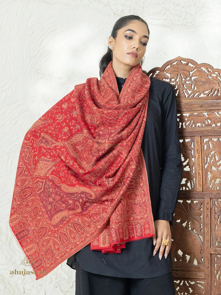 This Red Woollen Shawl with Kani Zari Weave is tailored for regular elegance. Crafted from fine wool blend, it features a refined kani weave that stands out effortlessly. The shawls silhouette in red makes it a distinctive wardrobe addition. This exquisite woollen shawls blends traditional charm with a modern aesthetic. Perfect for layering or wearing solo, it adds grace and warmth to every look. From cultural occasions to casual affairs, it adapts with timeless style and poise. An ideal choice for those who appreciate quality and artistic expression. The rich texture and finish make it a keepsake for any season. Experience effortless elegance with its flowing drape and captivating detailing. A must-have that redefines sophistication through subtle artistry and comfort.