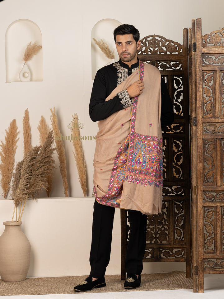 This Handloom Pure Pashmina Shawl in Beige for Men's is tailored for regular elegance. Crafted from fine Pashmina, it features a refined Handloom Pure Pashmina that stands out effortlessly. The Handloom Pure Pashmina silhouette in Beige makes it a distinctive wardrobe addition. This exquisite men's Pashmina Shawl blends traditional charm with a modern aesthetic. Perfect for layering or wearing solo, it adds grace and warmth to every look. From cultural occasions to casual affairs, it adapts with timeless style and poise. An ideal choice for those who appreciate quality and artistic expression. The rich texture and finish make it a keepsake for any season. Experience effortless elegance with its flowing drape and captivating detailing. A must-have that redefines sophistication through subtle artistry and comfort.