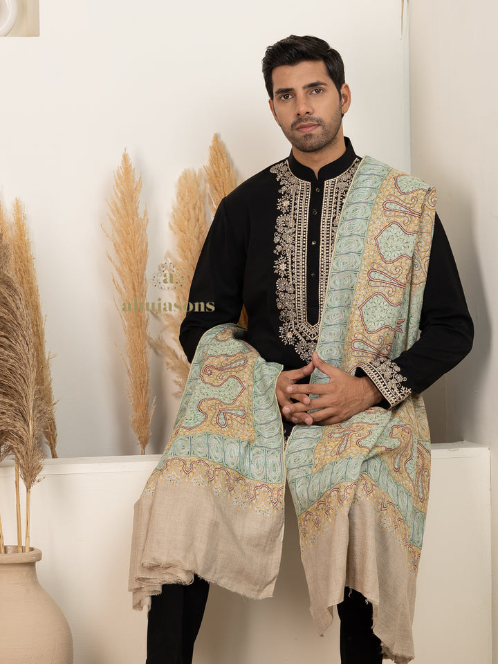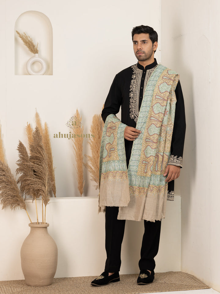 This Handloom Pure Pashmina Shawl in Green for Men is tailored for regular elegance. Crafted from fine pure pashmina, it features a refined design that stands out effortlessly. The silhouette in green makes it a distinctive wardrobe addition. This exquisite men pure pashmina shawl blends traditional charm with a modern aesthetic. Perfect for layering or wearing solo, it adds grace and warmth to every look. From cultural occasions to casual affairs, it adapts with timeless style and poise. An ideal choice for those who appreciate quality and artistic expression. The rich texture and finish make it a keepsake for any season. Experience effortless elegance with its flowing drape and captivating detailing. A must-have that redefines sophistication through subtle artistry and comfort.