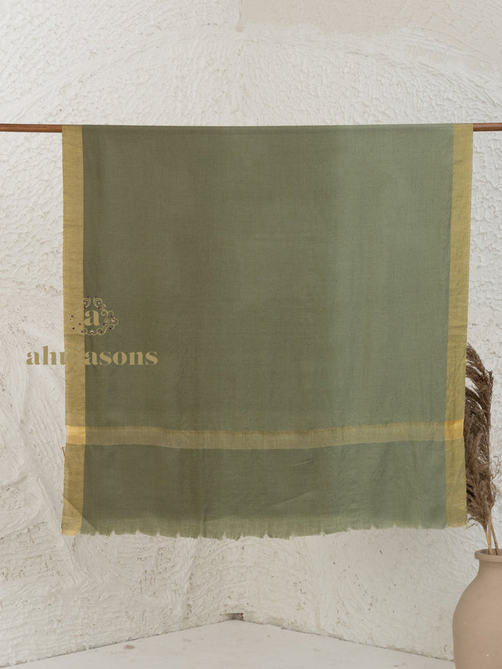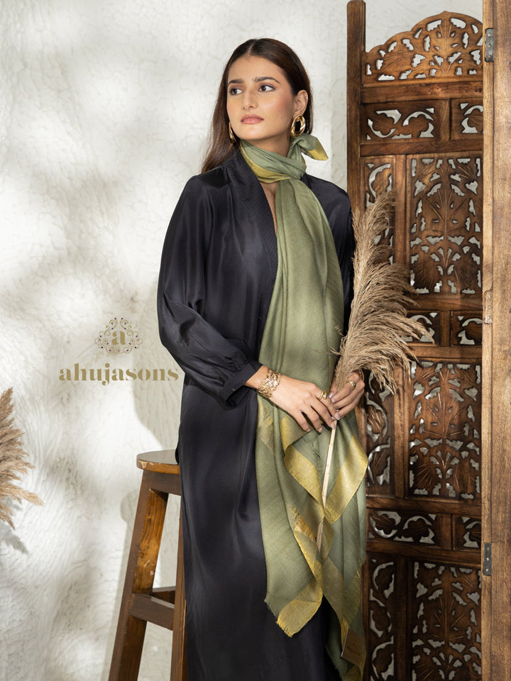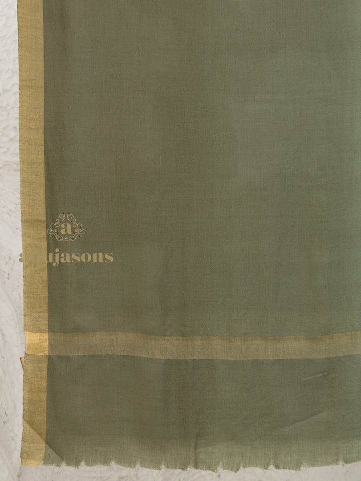 This Handloom Pure Pashmina Shawl Contrast Zari in Green blends heritage with modern elegance. Handcrafted by skilled artisans, it features Intricate Contrast Zari for a subtle, sophisticated sheen. Made from 100% pure pashmina wool, it offers exceptional softness, warmth, and a fluid drape—perfect for festive occasions or elevating everyday style.