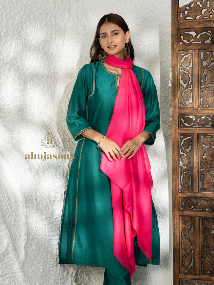 This Handloom Pure Pashmina Shawl solid in Pink blends heritage with modern elegance. Handcrafted by skilled artisans, it features Signature Solid for a subtle, sophisticated sheen. Made from 100% pure pashmina wool, it offers exceptional softness, warmth, and a fluid drape—perfect for festive occasions or elevating everyday style.