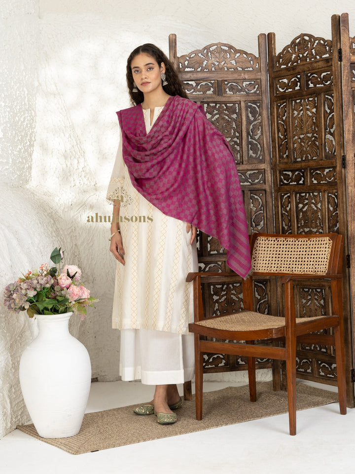 Elevate your ensemble with the charm of the Pink Handloom Pure Pashmina Stole featuring refined Check Pattern Stole detailing, handwoven by skilled Kashmiri artisans, a reflection of authentic elegance and heritage. Designed exclusively for women who embrace classic style and modern poise.