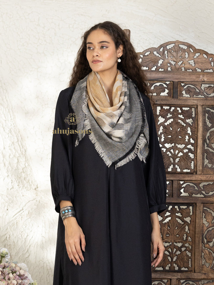Immerse yourself in the splendor of the White Handloom Pure Pashmina Stole showcasing intricate Ekat Stole, woven with precision and care, radiating delicate texture and refined artistry. An heirloom-worthy addition that complements festive and everyday elegance alike.