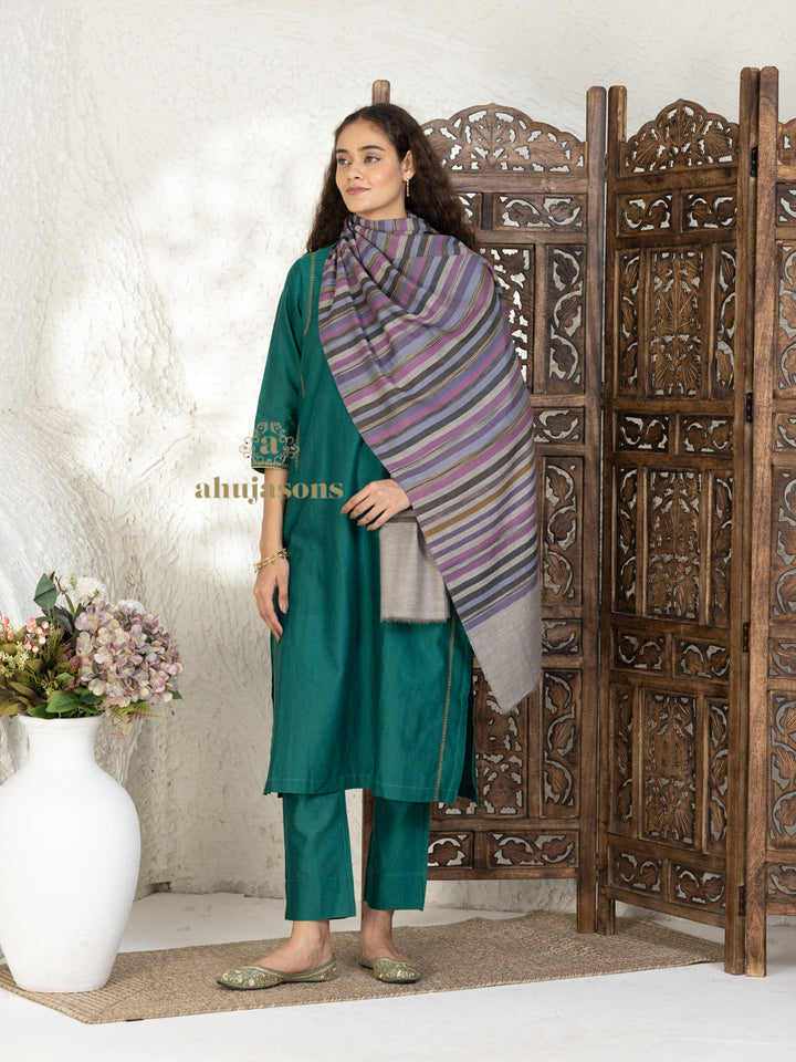 Immerse yourself in the splendor of the Multi Handloom Pure Pashmina Stole highlighted by refined Ekat Stole detailing, woven with precision and care, radiating delicate texture and refined artistry. A luxurious piece that defines grace and opulence for every occasion.