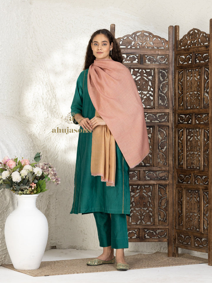 Drape yourself in the soft luxury of the Orange Handloom Pure Pashmina Stole featuring &Pink Solid Stole, crafted from the finest handloom pashmina, offering unrivaled warmth and sophistication. An heirloom-worthy addition that complements festive and everyday elegance alike.