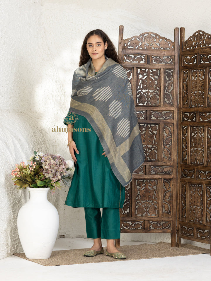 Elevate your ensemble with the charm of the Grey Handloom Pure Pashmina Stole adorned with Ekat Stole, handwoven by skilled Kashmiri artisans, a reflection of authentic elegance and heritage. Designed exclusively for women who embrace classic style and modern poise.
