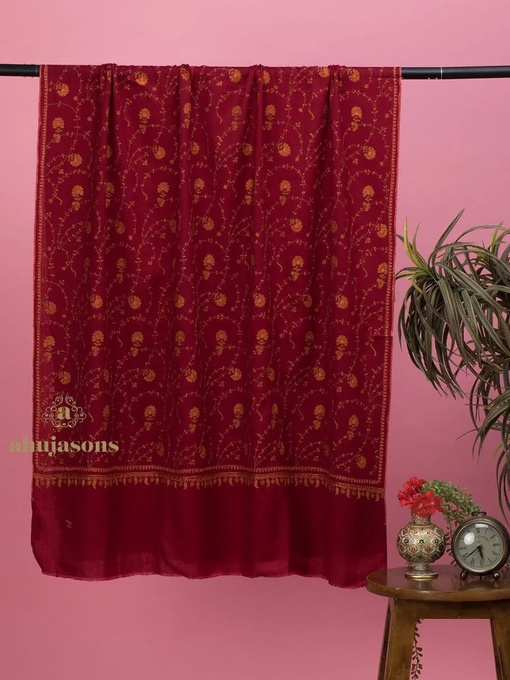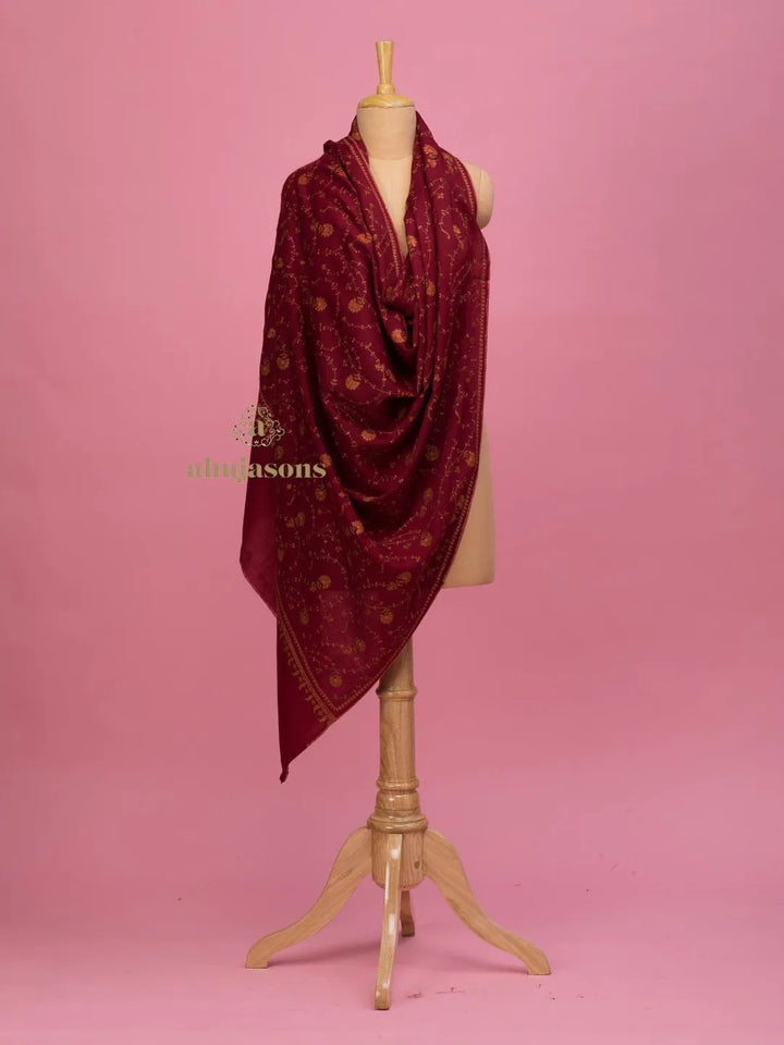 This Luxurious Cashmina Shawl with Jaal Pattern in Maroon is tailored for regular elegance. Crafted from fine cashmina, it features a refined booti/jaal that stands out effortlessly. The cashmina shawl silhouette in maroon makes it a distinctive wardrobe addition. This exquisite embroidered cashmina shawl blends traditional charm with a modern aesthetic. Perfect for layering or wearing solo, it adds grace and warmth to every look. From cultural occasions to casual affairs, it adapts with timeless style and poise. An ideal choice for those who appreciate quality and artistic expression. The rich texture and finish make it a keepsake for any season. Experience effortless elegance with its flowing drape and captivating detailing. A must-have that redefines sophistication through subtle artistry and comfort.