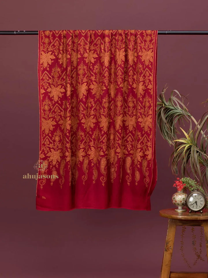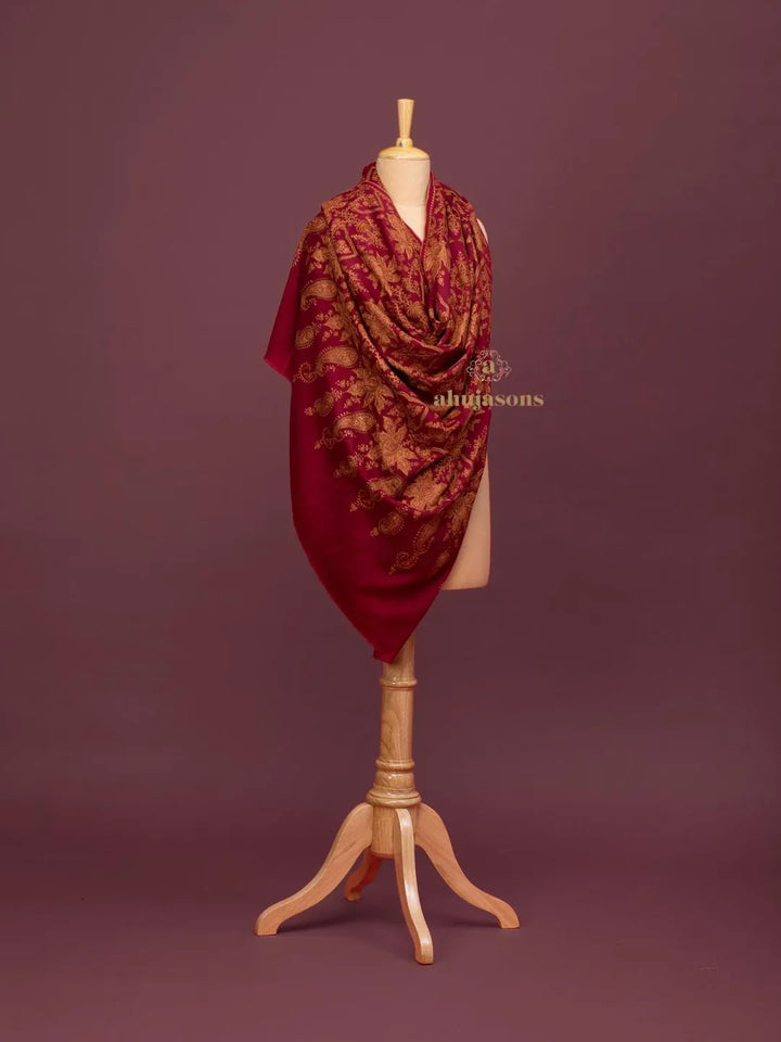 This Luxurious Cashmina Shawl with Jama Jaal Pattern in Maroon is tailored for regular elegance. Crafted from fine cashmina, it features a refined booti/jaal that stands out effortlessly. The cashmina shawl silhouette in maroon makes it a distinctive wardrobe addition. This exquisite embroidered cashmina shawl blends traditional charm with a modern aesthetic. Perfect for layering or wearing solo, it adds grace and warmth to every look. From cultural occasions to casual affairs, it adapts with timeless style and poise. An ideal choice for those who appreciate quality and artistic expression. The rich texture and finish make it a keepsake for any season. Experience effortless elegance with its flowing drape and captivating detailing. A must-have that redefines sophistication through subtle artistry and comfort.