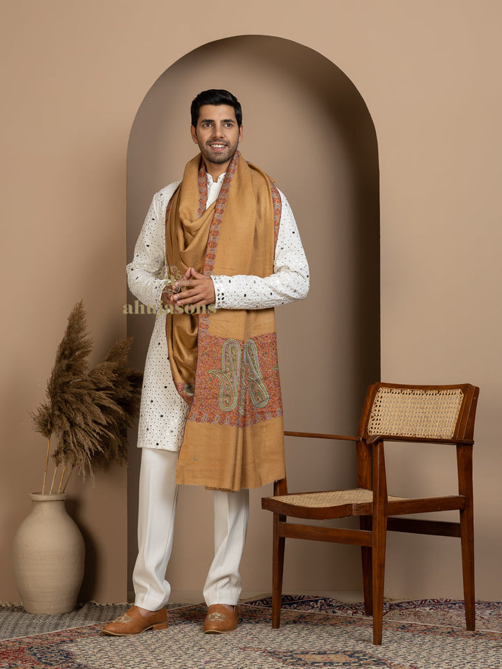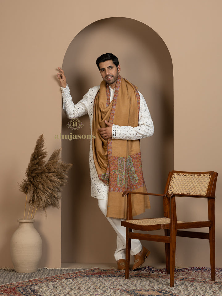 This Handloom Pure Pashmina Shawl in Mustard for Men is tailored for regular elegance. Crafted from fine pashmina, it features a refined handloom that stands out effortlessly. The handloom silhouette in mustard makes it a distinctive wardrobe addition. This exquisite men pashmina shawl blends traditional charm with a modern aesthetic. Perfect for layering or wearing solo, it adds grace and warmth to every look. From cultural occasions to casual affairs, it adapts with timeless style and poise. An ideal choice for those who appreciate quality and artistic expression. The rich texture and finish make it a keepsake for any season. Experience effortless elegance with its flowing drape and captivating detailing. A must-have that redefines sophistication through subtle artistry and comfort.