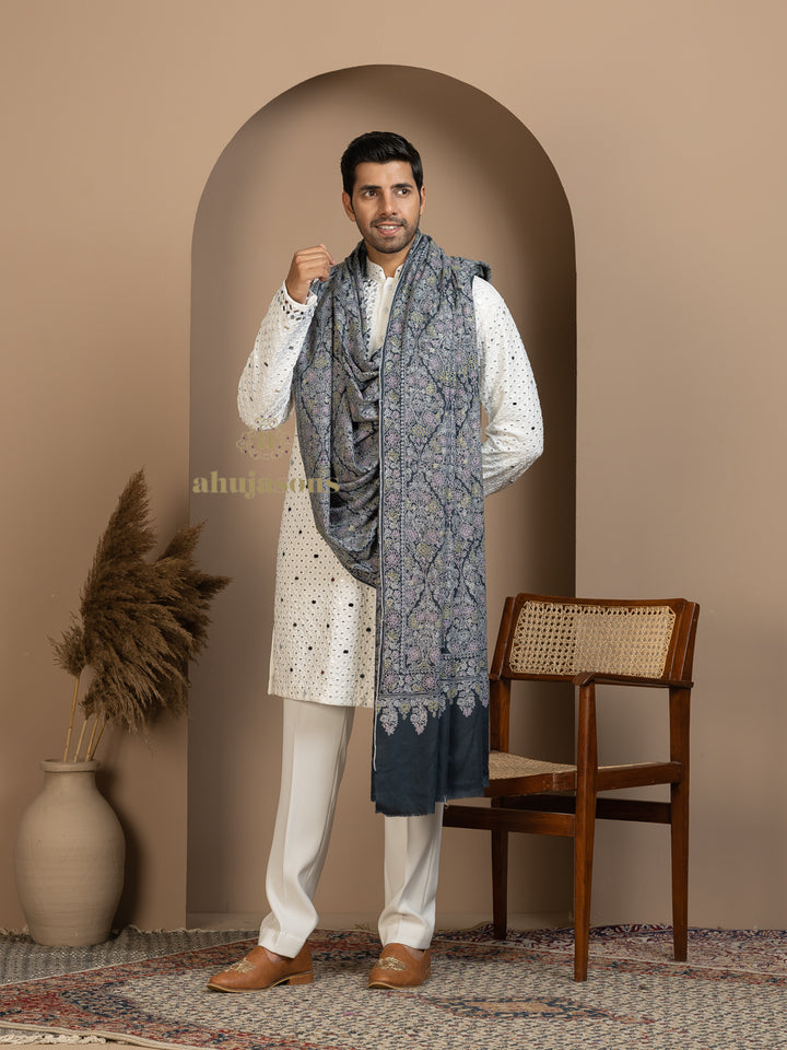 This Navy Blue Men's Handloom Pure Pashmina Shawl is tailored for regular elegance. Crafted from fine pashmina, it features a refined Handloom Pure Pashmina that stands out effortlessly. The Handloom Pure Pashmina silhouette in Navy Blue makes it a distinctive wardrobe addition. This exquisite men pashmina shawl blends traditional charm with a modern aesthetic. Perfect for layering or wearing solo, it adds grace and warmth to every look. From cultural occasions to casual affairs, it adapts with timeless style and poise. An ideal choice for those who appreciate quality and artistic expression. The rich texture and finish make it a keepsake for any season. Experience effortless elegance with its flowing drape and captivating detailing. A must-have that redefines sophistication through subtle artistry and comfort.