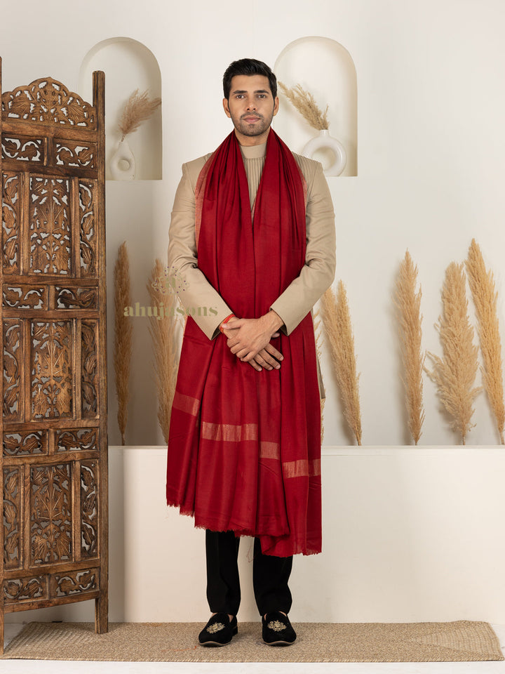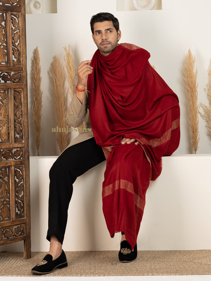 This Red Men's Handloom Pure Pashmina Shawl is tailored for regular elegance. Crafted from fine pashmina, it features a refined handloom pure pashmina that stands out effortlessly. The handloom pure pashmina silhouette in red makes it a distinctive wardrobe addition. This exquisite men pashmina shawl blends traditional charm with a modern aesthetic. Perfect for layering or wearing solo, it adds grace and warmth to every look. From cultural occasions to casual affairs, it adapts with timeless style and poise. An ideal choice for those who appreciate quality and artistic expression. The rich texture and finish make it a keepsake for any season. Experience effortless elegance with its flowing drape and captivating detailing. A must-have that redefines sophistication through subtle artistry and comfort.