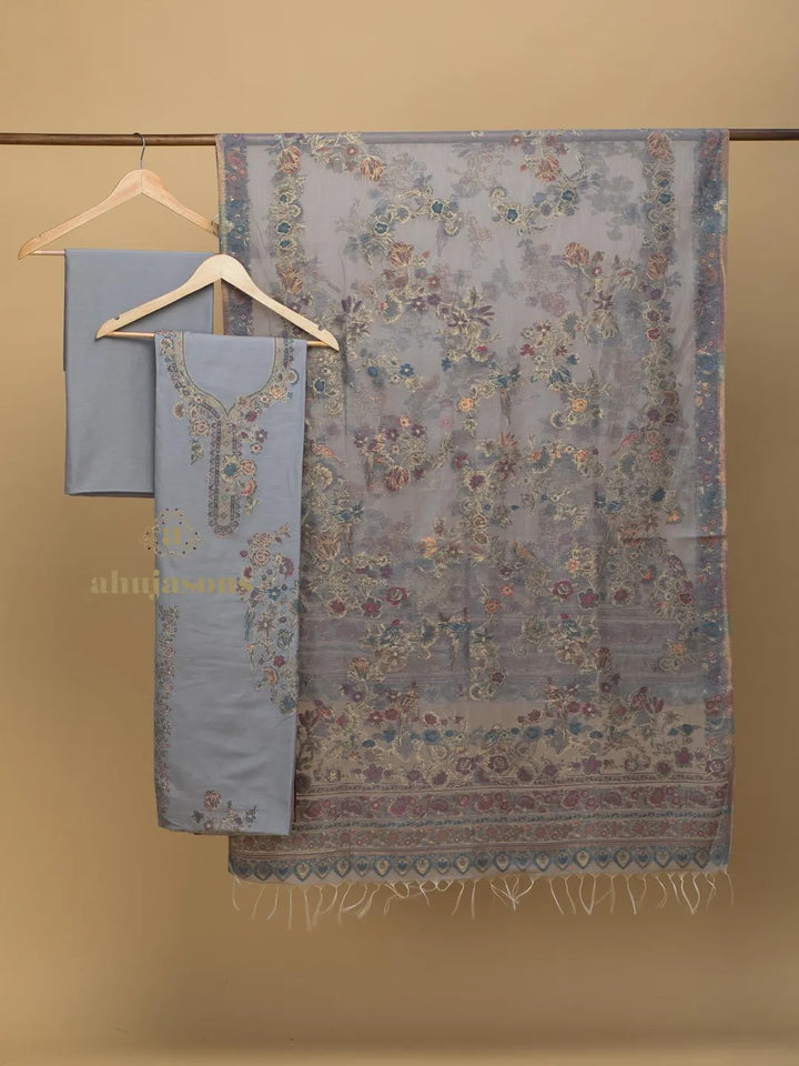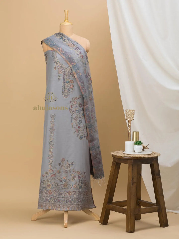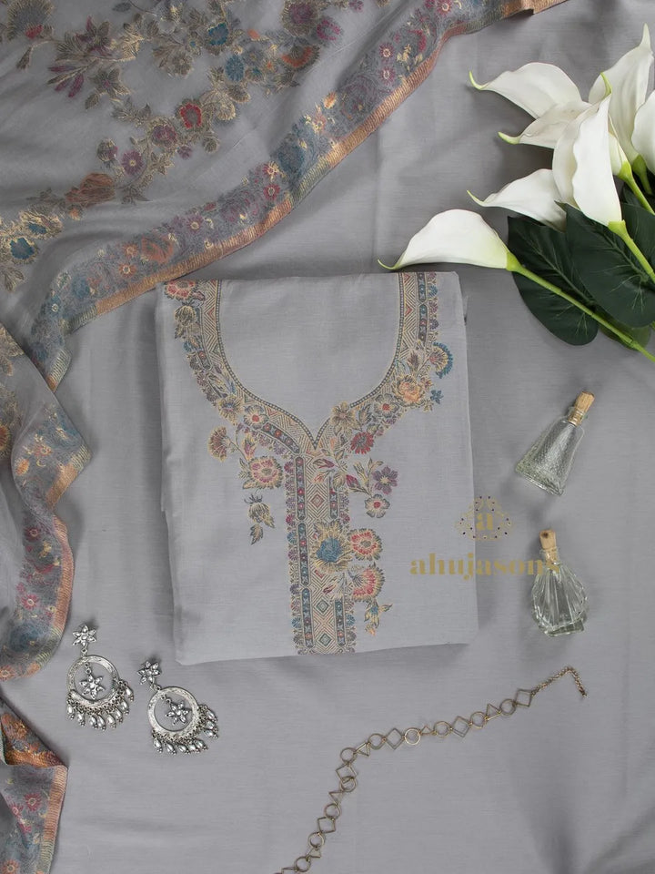 This Timeless Grey Cotton silk suit with zari weaving Elegance is tailored for regular elegance. Crafted from fine cotton silk, it features a refined suits that stands out effortlessly. The unstitched suit silhouette in grey makes it a distinctive wardrobe addition. This exquisite unstitched suit blends traditional charm with a modern aesthetic. Perfect for layering or wearing solo, it adds grace and warmth to every look. From cultural occasions to casual affairs, it adapts with timeless style and poise. An ideal choice for those who appreciate quality and artistic expression. The rich texture and finish make it a keepsake for any season. Experience effortless elegance with its flowing drape and captivating detailing. A must-have that redefines sophistication through subtle artistry and comfort.
