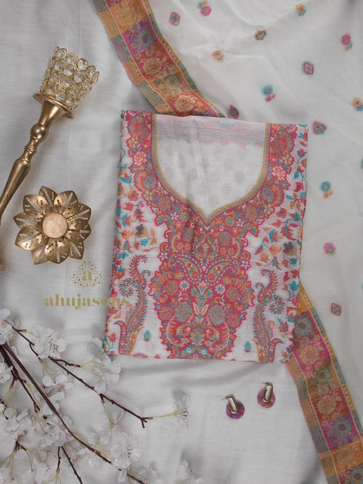 This Vibrant White Colour Cotton Silk Suit Aesthetic is tailored for regular elegance. Crafted from fine cotton silk, it features a refined suits that stands out effortlessly. The suits silhouette in white makes it a distinctive wardrobe addition. This exquisite unstitched suit blends traditional charm with a modern aesthetic. Perfect for layering or wearing solo, it adds grace and warmth to every look. From cultural occasions to casual affairs, it adapts with timeless style and poise. An ideal choice for those who appreciate quality and artistic expression. The rich texture and finish make it a keepsake for any season. Experience effortless elegance with its flowing drape and captivating detailing. A must-have that redefines sophistication through subtle artistry and comfort.