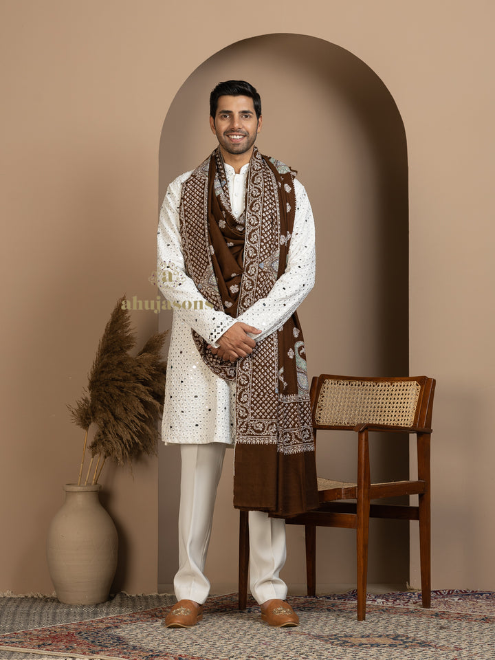 This Heritage Handloom Pure Pashmina Shawl in Wine for Men is tailored for regular elegance. Crafted from fine pashmina, it features a refined handloom pure pashmina that stands out effortlessly. The handloom pure pashmina silhouette in wine makes it a distinctive wardrobe addition. This exquisite men pashmina shawl blends traditional charm with a modern aesthetic. Perfect for layering or wearing solo, it adds grace and warmth to every look. From cultural occasions to casual affairs, it adapts with timeless style and poise. An ideal choice for those who appreciate quality and artistic expression. The rich texture and finish make it a keepsake for any season. Experience effortless elegance with its flowing drape and captivating detailing. A must-have that redefines sophistication through subtle artistry and comfort.